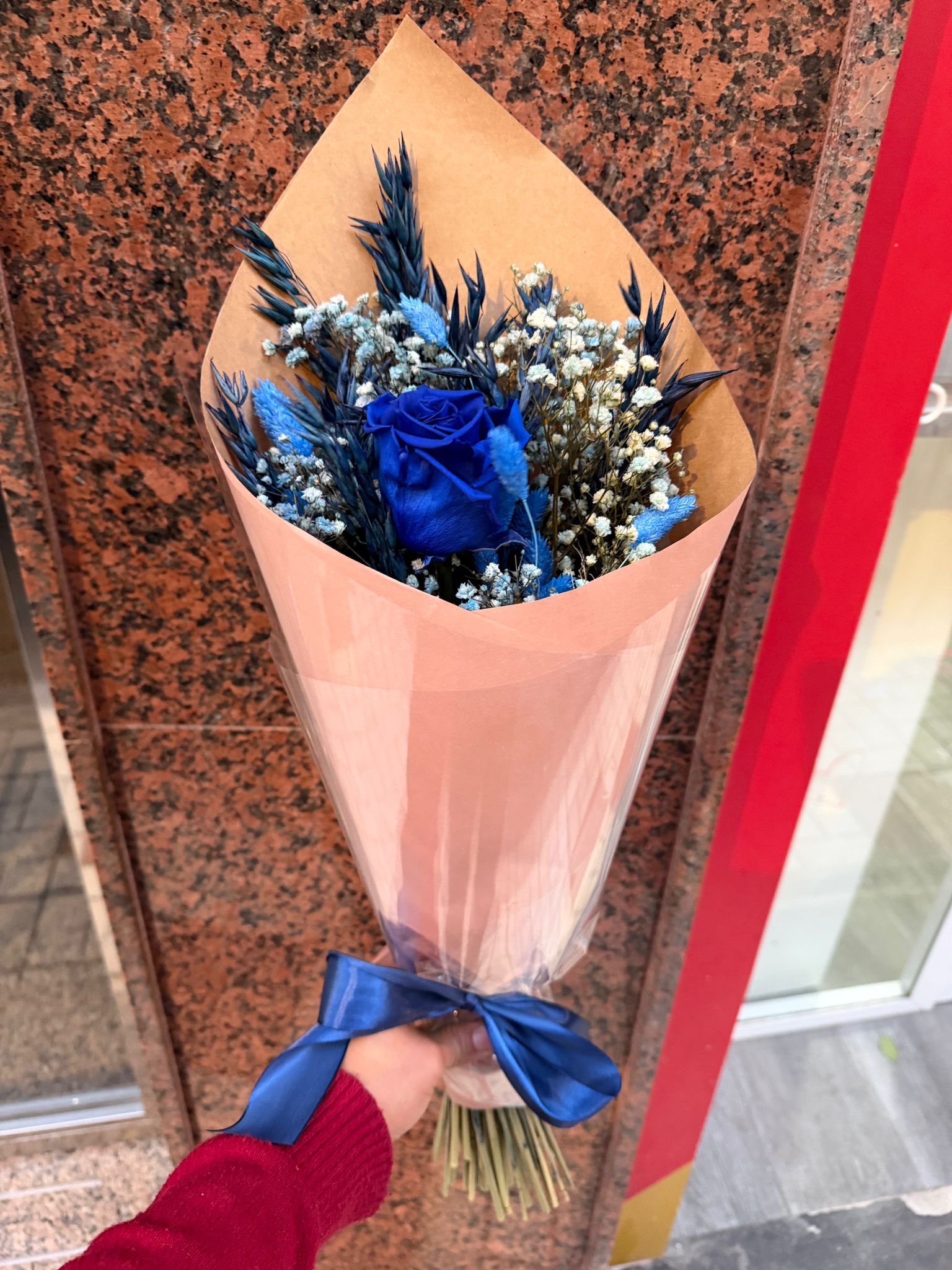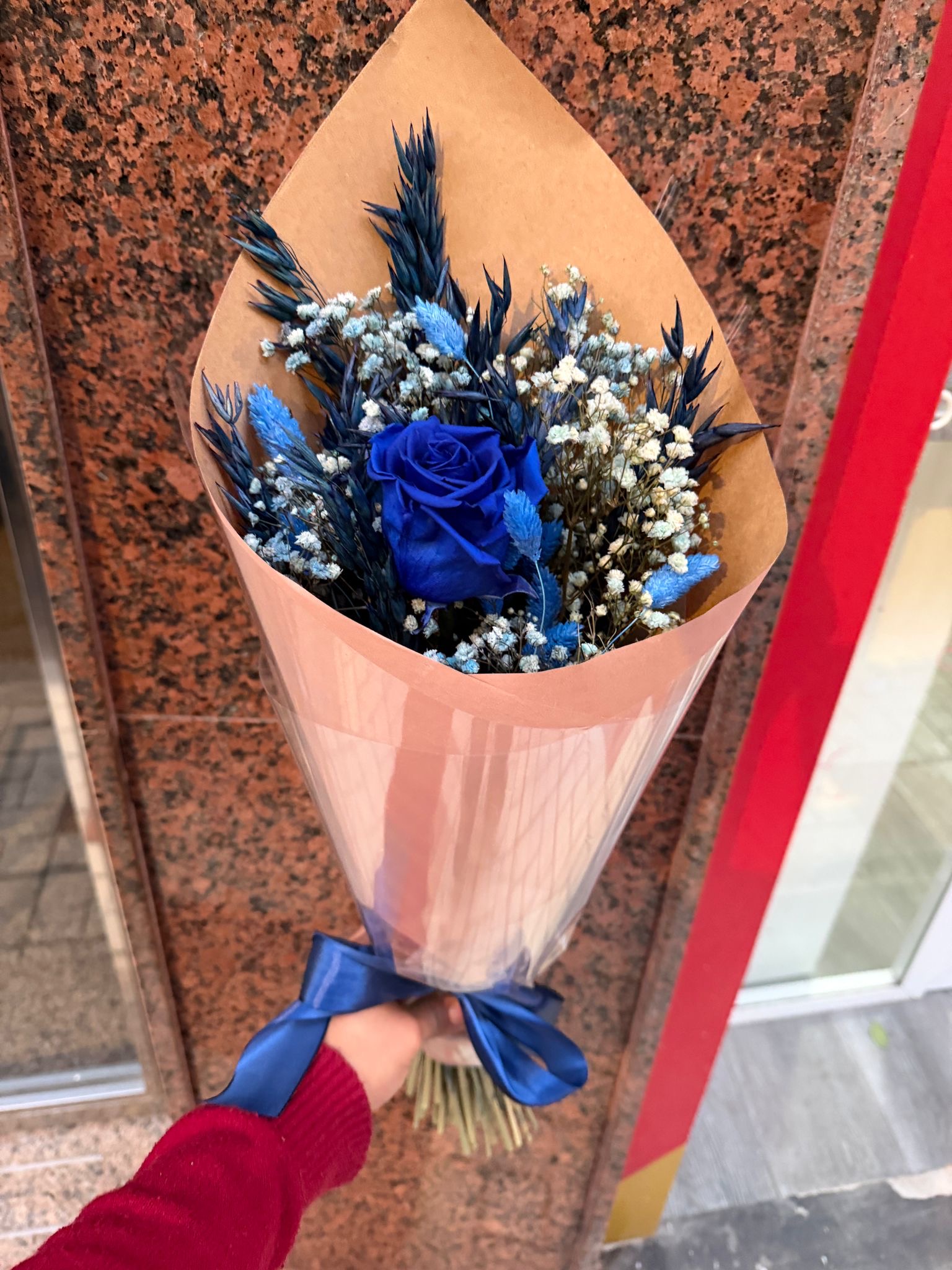 Descubre la elegancia de nuestra rosa azul preservada, un símbolo de calma y sofisticación que dura años sin necesidad de riego ni cuidados especiales. Esta rosa se acompaña de avena seca, phalaris seco y paniculata preservada, creando un arreglo natural, delicado y lleno de textura. Perfecta para regalar en ocasiones especiales, decorar tu hogar o añadir un toque de serenidad y color a cualquier espacio. Cada detalle ha sido cuidadosamente seleccionado para lograr un equilibrio armonioso entre la frescura de la rosa y la rusticidad de los complementos secos.