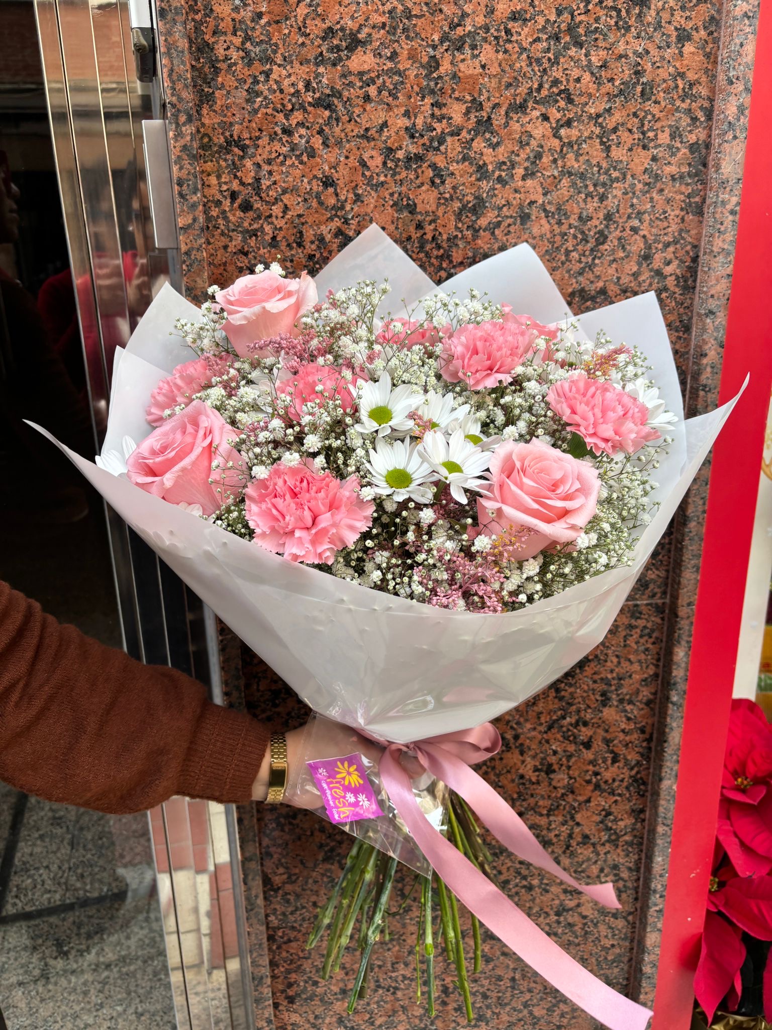 Este ramo es perfecto para cumpleaños, aniversarios, nacimientos, agradecimientos, celebraciones especiales o para sorprender sin motivo a esa persona especial. Su combinación de tonos rosados y blancos lo convierte en un regalo floral delicado y atemporal, ideal para enviar a domicilios, hospitales u oficinas.