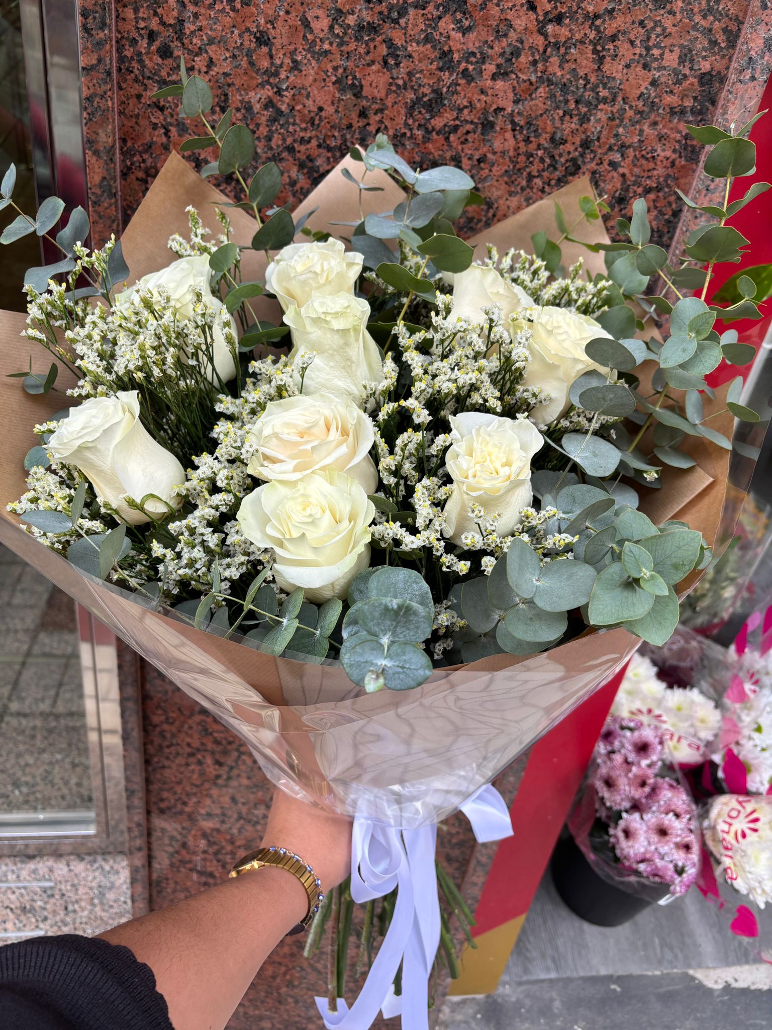 Este elegante ramo de 9 rosas blancas Mondial con eucalipto es una opción perfecta para quienes buscan flores frescas, sofisticadas y de alta calidad. Las rosas blancas Mondial destacan por su gran tamaño, pétalos aterciopelados y un color blanco puro que transmite paz, amor sincero y elegancia. El eucalipto natural aporta un toque verde, fresco y aromático, creando un arreglo floral moderno y equilibrado.