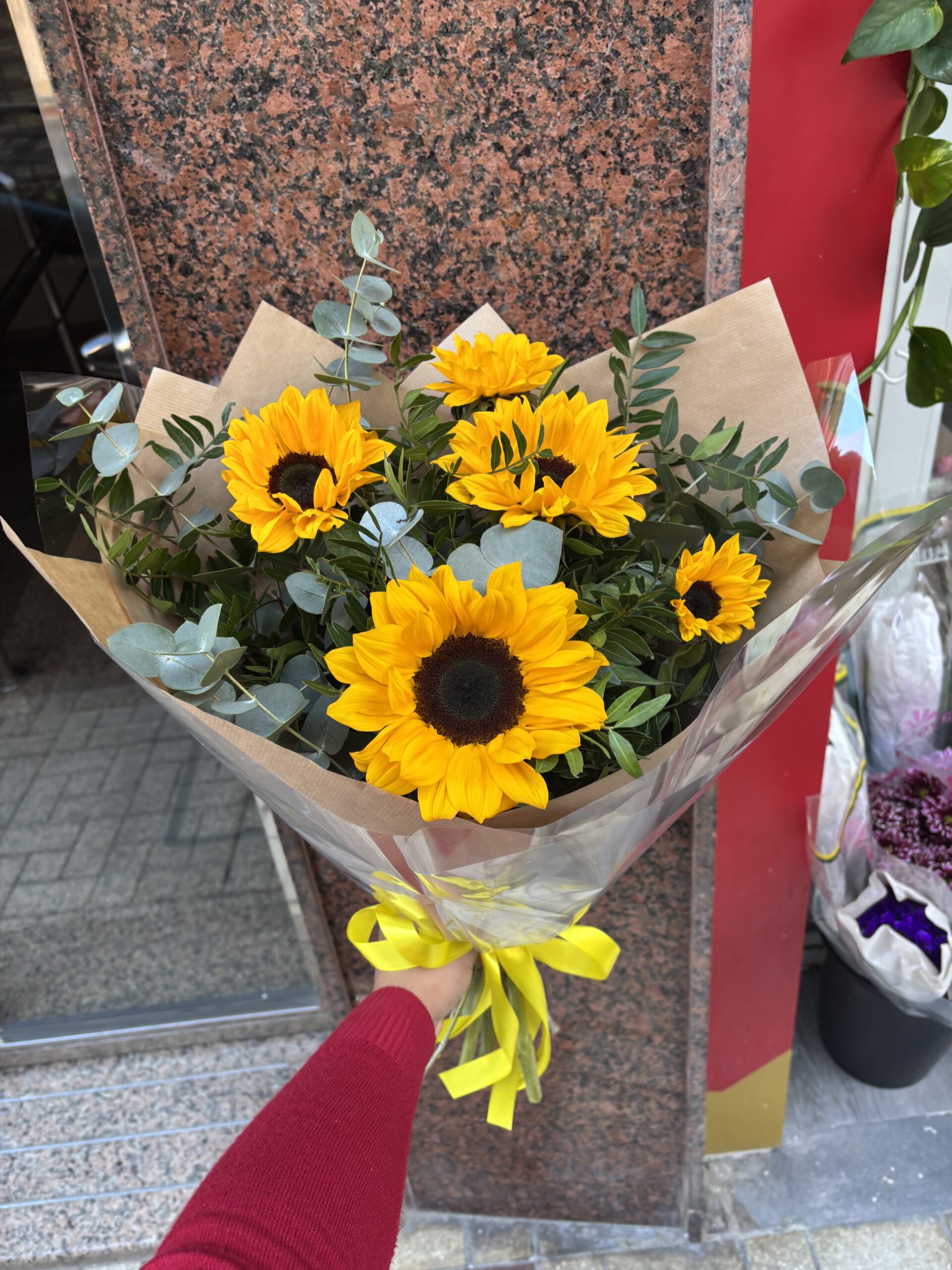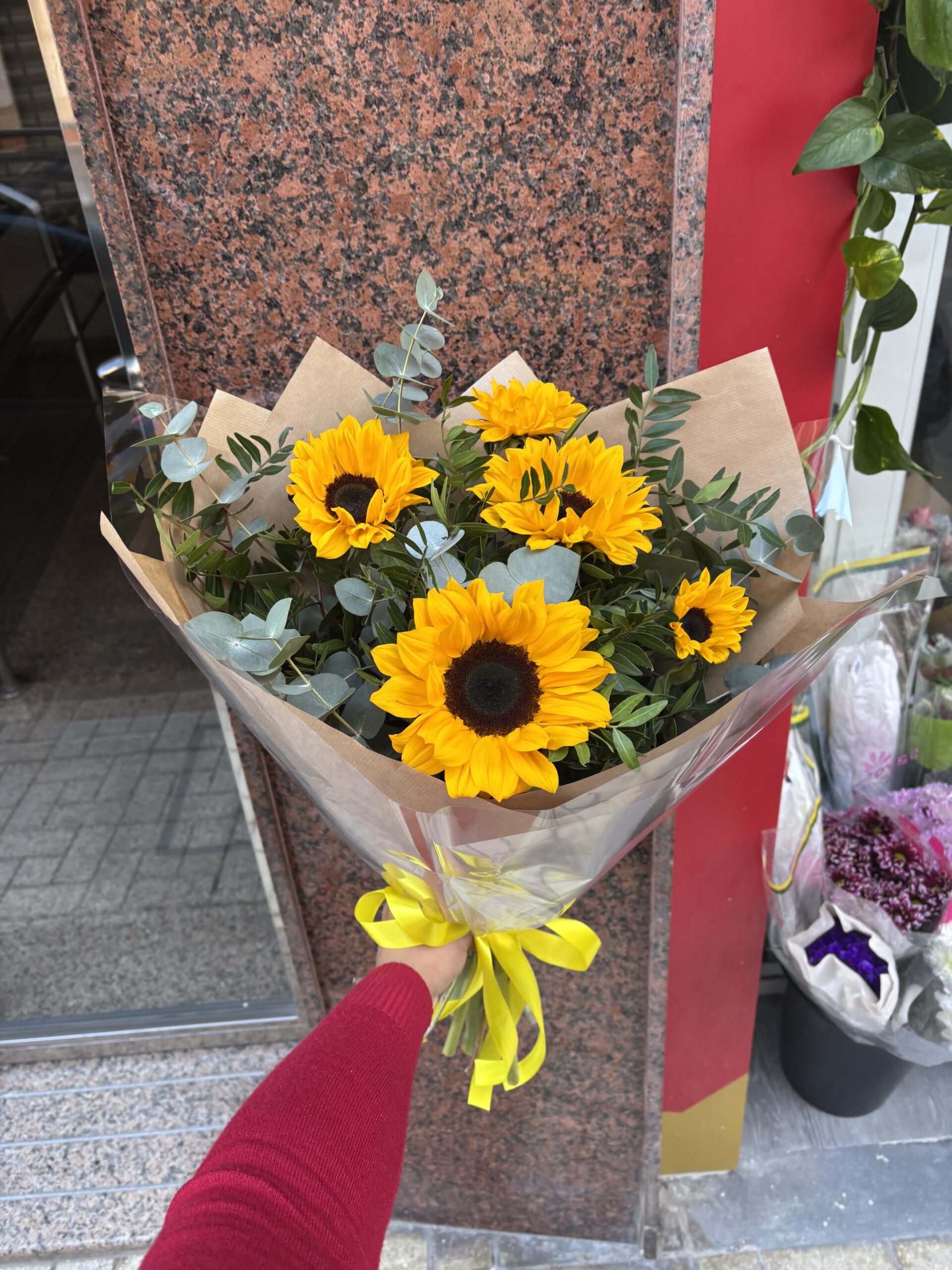 Haz que tu regalo destaque con “Sueño de Girasoles”, el ramo que combina la alegría de los girasoles con la frescura del lentisco y el eucalipto, disponible ahora en nuestra floristería en Málaga.